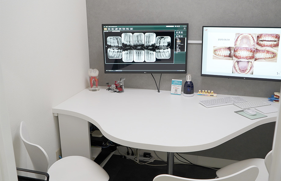 当院では治療に取り組む前に先進機器を使用して患者さまのお口の状態をあらゆる角度から時間をかけてしっかりと確認させていただいています。