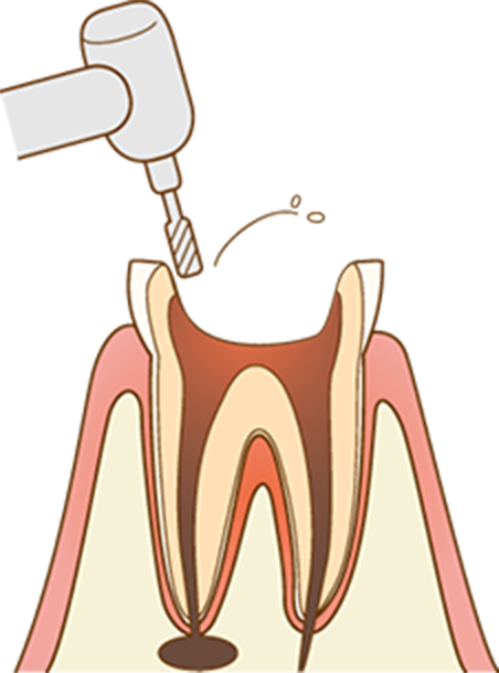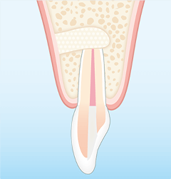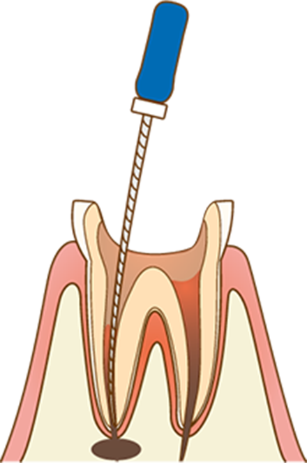 歯の神経や血管を取り除き、根管内を丁寧に清掃し、消毒と補強を行い歯を保護します。