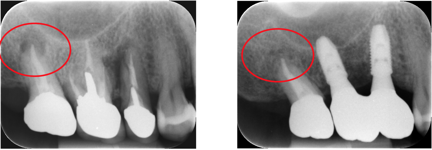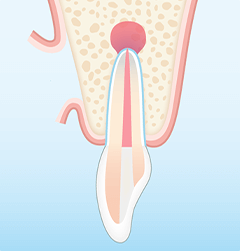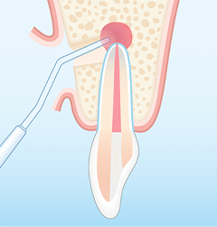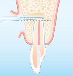 歯槽骨に穴を開け歯の根本から根管治療を行い、感染源を除去します
